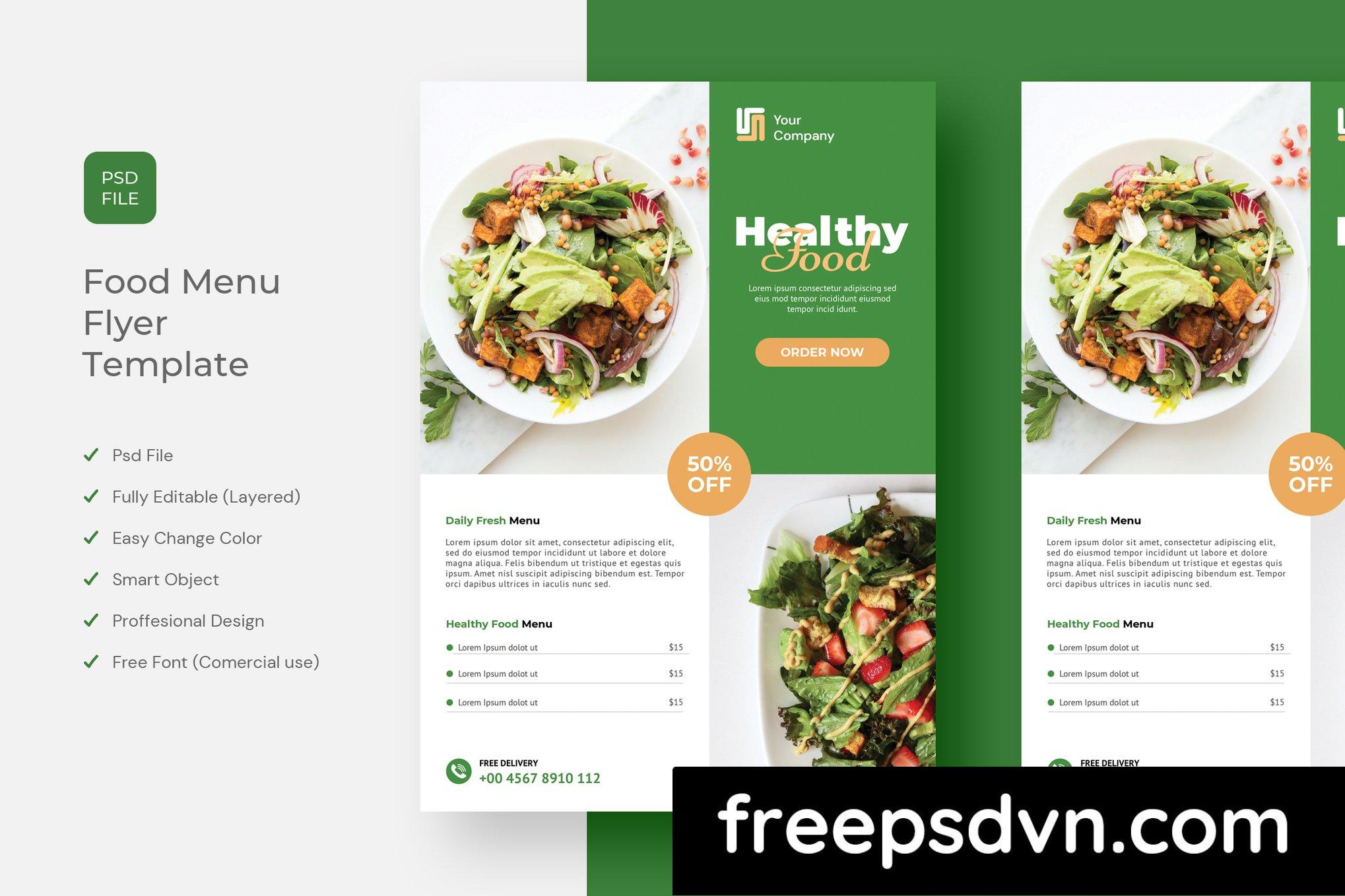 Healthy Food Menu Flyer Template: Templates that are designed with a minimalist and modern concept can be used for your business promotion. You can do customization easily.